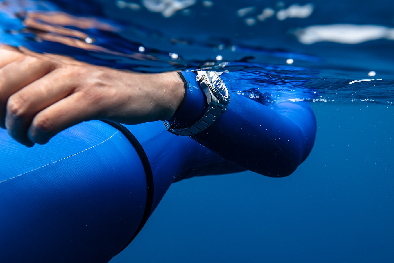 Technically robust with improved ergonomics, a unidirectional ceramic bezel with dive scale elegantly matches the dial and geometrical case features.